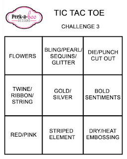 Peekaboo challenge - Tic tac toe (used Flowers - Bling/pearls - Diecut (A2 matting basic die used in fog colored front panel)