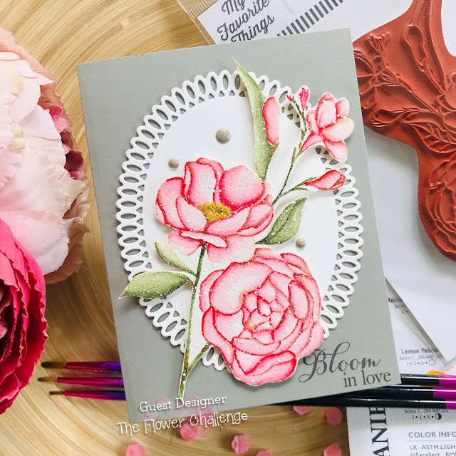 - Stamped Stamplorations Blossoms Sprays#3 from Dee's Artsy Impressions using Antique Linen onto a white cardstock.